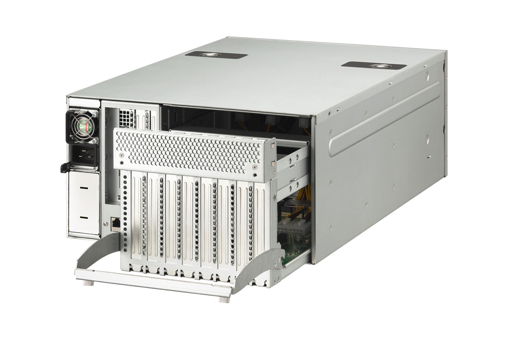 Taking advantage of disaggregated architecture, Falcon 4205 provide sufficient power and stand-alone cooling to multiple high-performance graphics cards. Each PCIe slot can provide up to 450 Watts to any power-hungry device and the four free-running fans adjust airflows according to the device temperatures to prevent GPUs from overheating under high stress conditions.